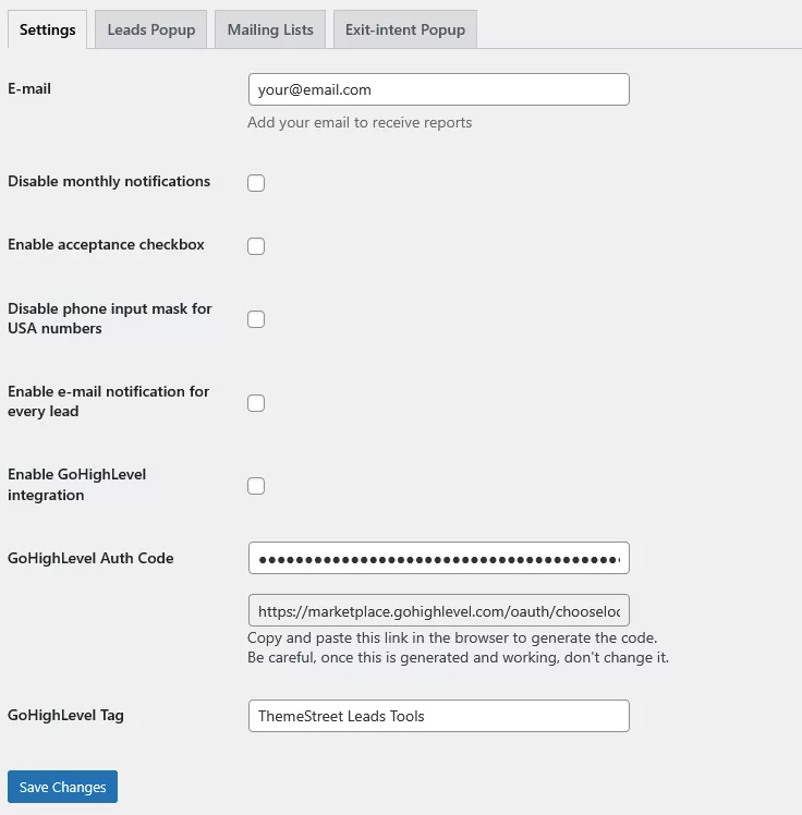 If you want to sync your leads with your mailing list software, this is the place to connect.