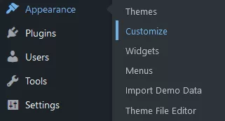 1. In your WP Admin Dashboard, under the “Appearance”, select “Customize”.